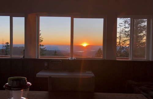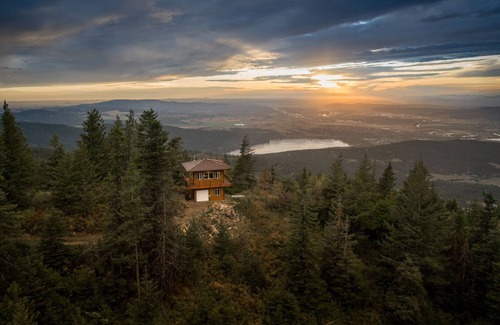 This unique Lookout Tower will sleep 4 and will offer spectacular views and a memorable hiking experience. It is a HIKING destination. It will require a 3 mile hike. Please see updated video! Located at 4700ft near Redemption Rock in Post Falls Idaho, enjoy views of WA and ID, including Liberty and Coeur D'Alene Lakes. The tower is solar powered and in range for all cellular providers. The trail head, parking and Tower are located on 950 acres of private property. There is NO running water. This is a dry cabin, equipped with an outdoor propane grill and indoor wood burning fireplace. Bottled water is provided. The hiking distance from the trail head at Redemption Rock Lodge is 3 miles. Be prepared to hike in and out supplies you will need for your stay. You are asked to clean before you go. No linens. Hike in your own sleeping bags. Propane, large sleeping cots, bottled water is provided.