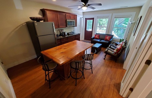 Nestled in the trees, this space is a 2-bedroom, 1-bathroom apartment above our 2-car garage with private exterior entry. Our quiet, wooded neighborhood is ideal for walking, jogging or biking on multi-use paths. Walk or bike two-thirds of a mile to the beach, or half a mile to enjoy our beautiful sunsets over the sound. You will be three miles away from the Town of Duck with its quaint shops, dining and sound front boardwalk.