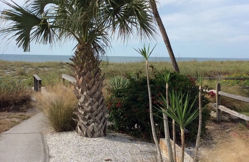 Location, Location, Location. San Ramon complex is located directly on the beach and has a private entrance for the Condo users. Our condo is only a few steps away from the Gulf of Mexico. There are just 28 units in this friendly condo complex. The condo is located on the 1st floor and is an end unit. There is a heated swimming pool with plenty of loungers, chairs and tables. The primary bedroom is large with a king size bed and an en-suite bathroom with a walk in shower. The guest bedroom has a queen size bed. Each bedroom has a flat screen tv. The main bathroom has a bath/shower combo. The condo is fully furnished. The living room has a new sofa/love- seat and a 52" flat screen tv. The Kitchen is fully equipped with Corian countertops and has everything you need to prepare a nice meal. There is one covered parking place and additional parking is available for guests. Beach towels and chairs are provided to enjoy a day at beach. Downtown Venice is close by with many restaurants and shops . Great golf courses are only a short drive away