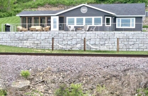 Lookin for a reel good time?? Reel Paradise is scenic oasis in the town of Lansing, Iowa and it is just like it sounds— it is Reel Paradise. This river-side getaway is the perfect space for your next family vacation, Mississippi River fishing trip, or boating adventure. This property features 3 bedrooms, 1.5 baths, and a screened in porch, perfect to watch the sunrise and sunset. This house comes fully equipped with kitchen plates, pots/pans, utensils, laundry, and linens-everything you need to feel at home! Enjoy using the gas grill and fire pit on the front patio of the home while overlooking the river. A fishing dock/boat slip is also an amenity that will be provided for your stay at no cost at all.