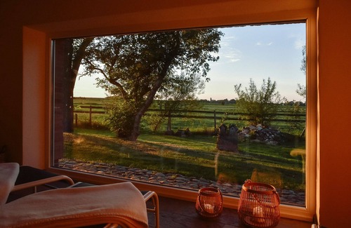 An old Art Nouveau stove warms you up on cold autumn and winter days. The relaxation room of the wellness area gives you a panoramic view towards Uelvesbüll and offers an additional retreat, e.g. B. for morning meditation. Sauna and utility room connect the three parts of the house, which can be rented together in any combination (see other ads on this website). Use of the sauna is also included in the price, as are bed linen, towels and WiFi.