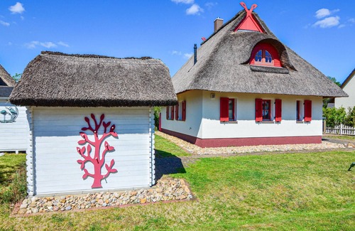 The fantastic thatched single-family house is furnished with great attention to detail, extremely comfortable and offers space for 4 guests. The cozy living room with underfloor heating and a wood-burning stove integrates a fully equipped kitchen and has direct access to the terrace overlooking the beautifully landscaped garden.