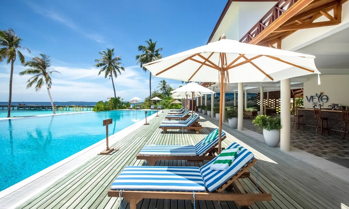 Best-rates for the Reethi Faru Resort starts from $182 per night with includes Restaurant, Toiletries, Guest Services, Internet, Kitchen, Laundry, Bar, Designated Smoking Area, View, Balcony/Terrace, Accessibility, Hot Tub, Air Conditioner, Pool, TV, Bedding/Linens, Barbecue/Outdoor Cooking, Child Friendly, Ocean View, Sports/Activities, Wellness Facilities, Spa, Entertainment with all other amenities. Perfect for Weddings is committed to ensuring every guest experiences a comfortable and extraordinary stay, whether planning a romantic getaway, a honeymoon, a pet-friendly stay, or celebrating with the entire wedding party.