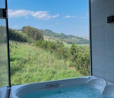 This property offers access to a balcony and free private parking. This air-conditioned 1-bedroom chalet comes with a dining area, a flat-screen TV, and a fully equipped kitchen with an oven. Towels and bed linen are offered in the chalet. The property has an outdoor dining area. The nearest airport is Serafin Enoss Bertaso Airport, 75 miles from Refúgio das Uvas * Cabana da Pedra.