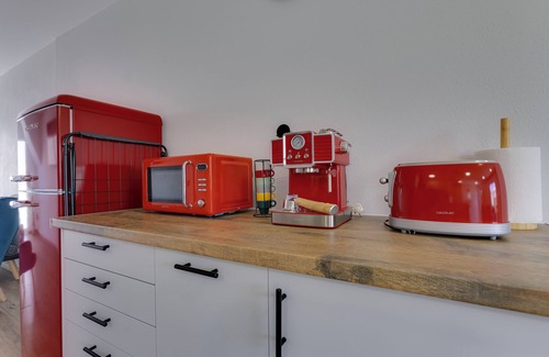 The kitchen is equipped with an oven, a stovetop, and a refrigerator, as well as a coffee maker, an electric kettle, and a microwave. Connect to the WiFi, or get cozy in front of the Smart TV. Bathroom amenities include a hair dryer, towels, and toilet paper. Other amenities at this 3-bedroom, 3-bathroom rental include a BBQ grill, bed sheets, an ironing board, and heating.