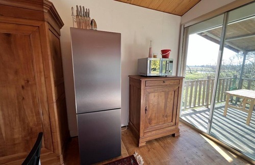 Total change of scenery for this chalet surrounded by nature of approximately 50m² which can accommodate 4 people. It consists of an equipped kitchen open to a living area, a shower room/WC, a bedroom with 1 double bed 160 cm with storage, a second bedroom with 2 single beds with storage. The exteriors are equipped with wooden terraces with garden furniture. Horses and cats will keep you company in the nearby meadow. Near the chalet is marshes. Deposit to be paid on site on arrival. Holiday checks accepted.