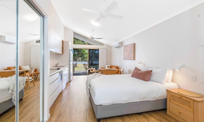 This Brunswick Heads holiday park provides complimentary wireless Internet access. 32-inch flat-screen televisions come with premium digital channels. Additionally, rooms include irons/ironing boards and ceiling fans.