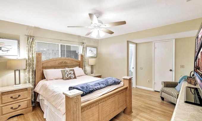 Unwind in a comfortable and well-equipped home, conveniently located near Orlando/Sanford Airport, Wekiwa Springs, and a variety of attractions. Whether you're looking for a peaceful retreat or an adventure-filled getaway, this home provides the perfect setting. Enjoy the fully equipped kitchen for all your culinary needs, sleep soundly in comfortable beds, and relax on the spacious back deck with a privacy fence. For entertainment, the game garage offers endless fun with foosball, ping pong, darts, basketball, and more. The quiet neighborhood provides a relaxing atmosphere while still being close to parks, playgrounds, and local activities.