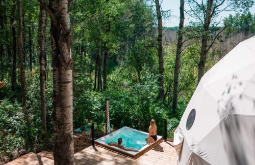 Refuge Bay Aer XL Dome - Luxury Off Grid Escape is located in Central Alberta. Refuge Bay Aer XL Dome - Luxury Off Grid Escape provides accommodation, featuring Kitchen, Security/Safety, Spa, among other amenities. This House features Kitchen, Security/Safety, Spa, to make your stay a comfortable one.