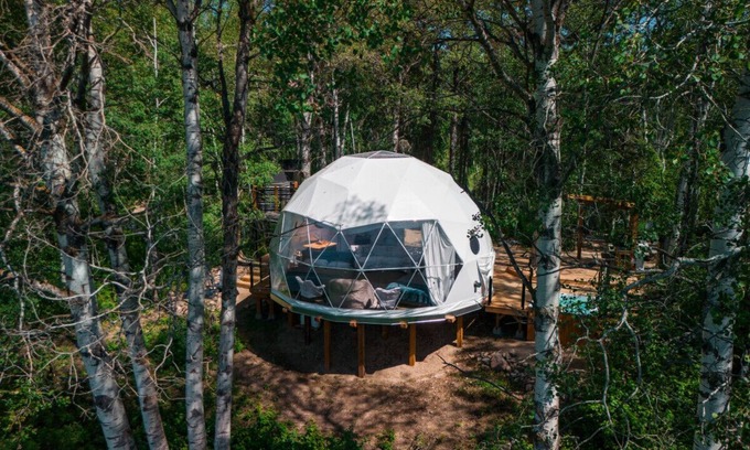 The state-of-the-art geodesic dome has a massive bay window to take in the breathtaking views, as well as a transparent roof so you can spend your evenings gazing at the stars.