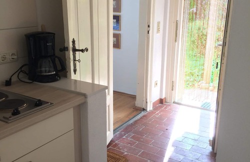 The approx. 60 m2 apartment is at ground level and almost barrier-free. In the bedroom with two super comfortable single beds and an adjoining bathroom with a walk-in shower, you can enjoy calm and healthy sleeping comfort. In the stylish living room you almost feel at home - with TV, a library, a dining table and an open kitchenette with a hotplate, fridge, toaster, kettle and coffee machine. Via your own terrace you are immediately in an unspoilt garden area with a garden sauna, table tennis table, many romantic sunbathing areas and a cheerful twittering of birds. There is a beautiful, clean swimming lake about 1 km away, and the area is ideal for relaxing walks. Or how about a trip to the neighboring country Poland and the nature reserve "Lower Oder Valley"? We will be happy to give you further tips on request.