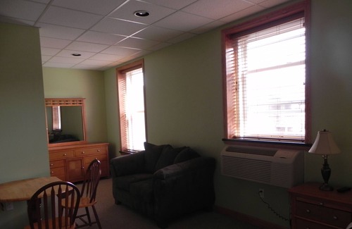 We offer a one room efficiency in the downtown area of Williamsport. Rooms have been upgraded to include a bed/living combo area. The unit includes a bed, loveseat, small dining table, dresser, television, coffee maker, plates and flatware, microwave, under counter refrigerator, garbage disposal, basic cable, basic WIFI, weekly room cleaning with fresh bed and bath linens. The rooms are situated within a historic hotel with a beautiful full service restaurant and bar on the first floor.