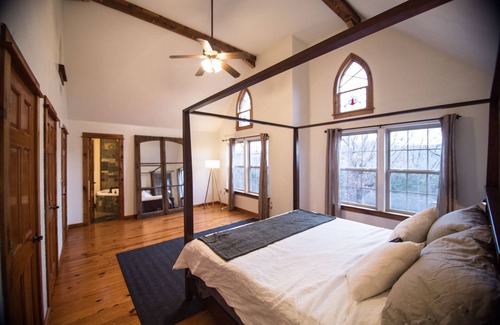 - Spacious Accommodations: With multiple bedrooms, including a luxurious master suite featuring a jacuzzi tub and breathtaking stained glass windows, you'll have ample space to accommodate your wedding party comfortably.