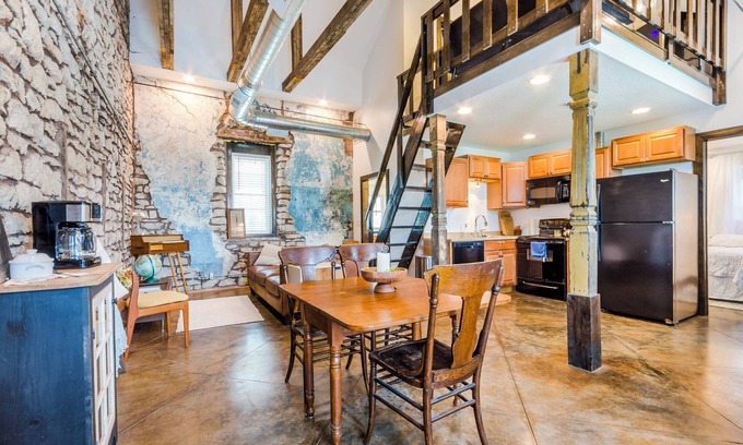 Come join us out at our little homestead just 20 minutes from K-State! Enjoy a unique and relaxing stay in our regenerated historic stone schoolhouse cottage built in 1876! The home - located off of pavement - sits on 5 acres and comes completely equipped with a full kitchen and washer/dryer at your disposal. The vaulted ceilings, original wood beams, and stone walls make this cozy cottage one of the most character-packed and charming stays you'll find near MHK.