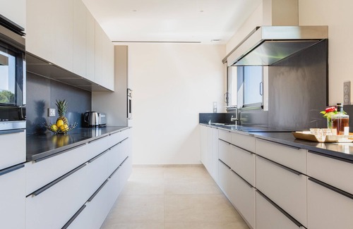 The spacious and contemporary villa with a refined style combining beautiful materials such as wood and black granite, has top-of-the-range equipment for maximum comfort and functionality.