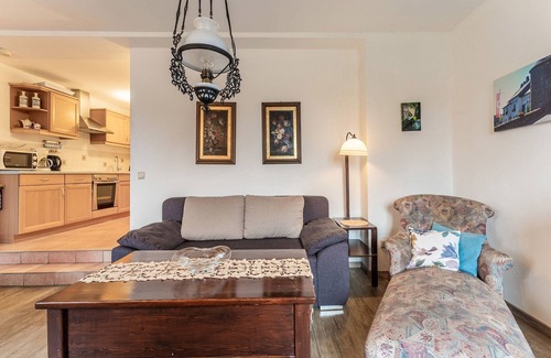 Located just 100 m from the forest, 500 m from restaurants, and 1 km from a scenic lake, the area is great for hiking, dining, and picnicking. The apartment features central heating, a shared terrace, and a furnished garden with barbecue facilities. Paid bicycle rentals are available for active guests, and 2 pets are welcome for a small fee.