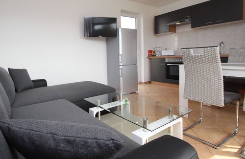 Layout: Ground floor: (open kitchen(hob(4 ring stoves, ceramic), electric kettle, toaster, coffee machine, oven, fridge-freezer), Living/diningroom(TV(satellite), dining table, seating area), bedroom(double bed), bedroom(single bed, single bed), bathroom(shower, washbasin, toilet)) heating(electric), terrace, garden furniture, parking, Towels/Sheets (Incl.)