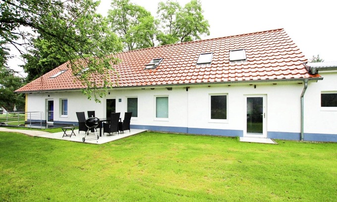 Bright and friendly furnished terraced houses with their own terrace, garden furniture and barbecue. The two-storey accommodations are modernly equipped. They are located in the middle of the beautiful Dobbertin lake landscape with its forests, meadows and numerous idyllic bodies of water on a peninsula in the Garden district. The closest lake is the Gardersee, which is only 300 meters away, so you can spontaneously take a refreshing dip or spend a few relaxing hours fishing. Young and old can also improve their riding skills on the neighboring paddock (for a fee).Lohmen is only a short drive from Güstrow, but you can also explore cities like Wismar, Rostock or Schwerin on an exciting day trip from here.Highlights included: All consumption-based energy costs, bed linen and towelsWLAN activities nearby: In Güstrow, 17 kilometers away, the old town impresses with beautiful half-timbered houses and defiant brick Gothic architecture as well as with imposing town houses, Renaissance buildings and the classicist town hall. The castle from the 16th century in particular gives the city its charm, as it is one of the most beautiful Renaissance buildings in northern Germany. The city museum, numerous galleries, pretty cafés and hidden courtyards make your day out a wonderful cultural experience.