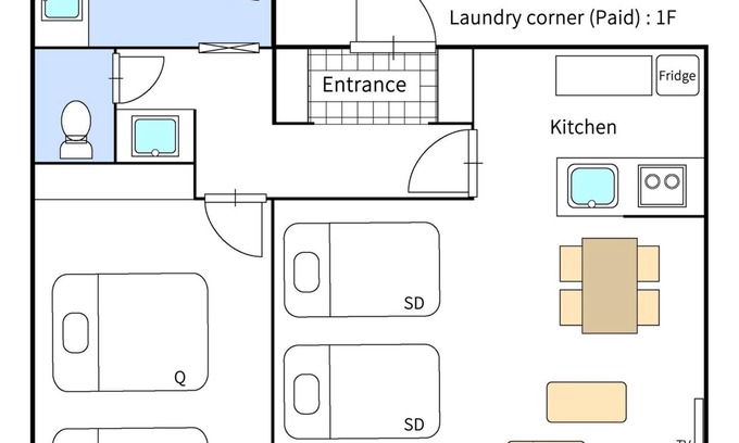 Number of beds Semidouble bed x 3 Sofa bed x 1 Queen bed x 2