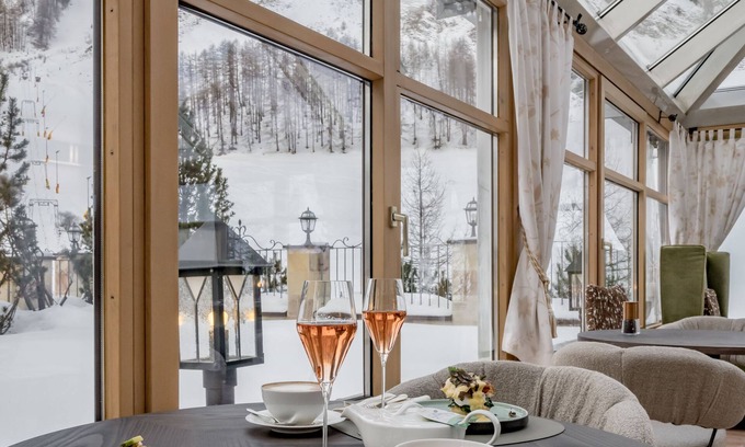Ski into Relais & Châteaux Chasa Montana, where you can enjoy a drink at the bar/lounge and comforts including an indoor pool and a full-service spa.