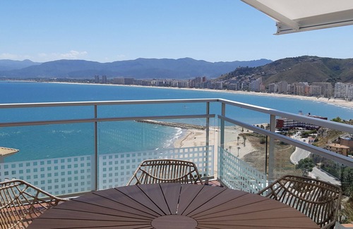 Forget your worries in this modern design house, an oasis of calm with awesome views over the bay of Cullera while listening to the sound of the waves.