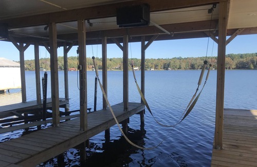 Drop a line and catch crappie, large mouth and hybrid striped bass, channel, flathead and blue catfish right off the dock. Want to explore the lake, bring your boat or jet skies and park in one of the boathouses electric lift stations.