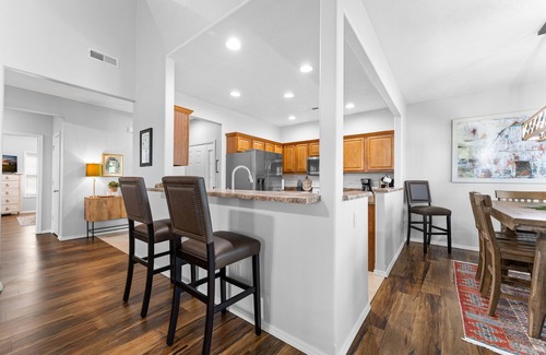 At StoneBridge Village, you will find an array of amenities designed to enhance your stay and provide everything needed for a memorable event. Enjoy access to the championship LedgeStone Golf Course, multiple swimming pools, tennis courts, and scenic walking trails. Gather friends and family in your spacious villa, which features modern furnishings, smart TVs, a well-equipped kitchen, and a large patio with stunning views of the Ozark hills. With three beautifully appointed bedrooms and room for up to eight guests, your party can relax and unwind before the big day, making it ideal for bridal parties or family gatherings.