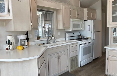 This lovely little cottage has everything included for a perfect vacation stay. Located within a secure, gated community you have the privileged use of three swimming pools, two large hot tubs, a fitness center, tennis/pickleball courts, an on-site restaurant, 9 hole golf course, arts/craft shops, and so much more! Guest must be 55 and older to book. Home is located just a few miles east of downtown Tucson.
