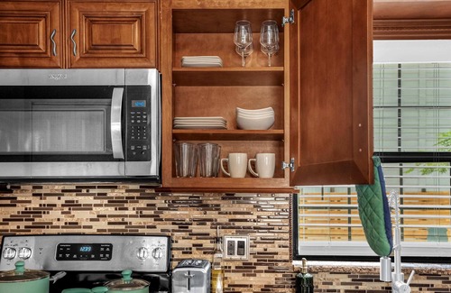 - Fully equipped kitchen. All essentials such as plates, cups, bowls, cookware, utensils, etc. are provided to facilitate preparation of home-cooked meals.