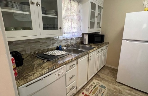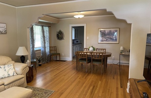 This home also features 1 full bathroom, outdoor motion activated recording Ring security cameras and lights at the front and back entrances, full kitchen, 2 queen beds, a twin bed, and options for other sleep arrangements (a roll away bed or queen air mattress possibly available upon request).