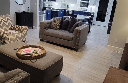 Relax with the whole family at this peaceful place to stay. The perfect place to create new experiences. Freshly remodeled for maximum functionality. Full kitchen stocked with tableware. Master bedroom is complete with a bathroom with walk-in shower, plush king size bed, reading chair and 52” Smart TV. Minutes from Crowders Mountain State Park & Two Kings Casino.