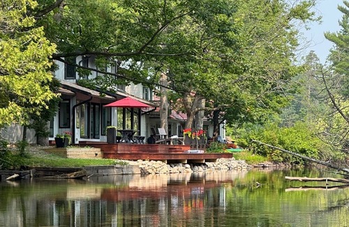 **Rents Seven Nights Friday to Friday in the summer months.** Message us if you are interested and your preferred dates are not available. Welcome to this charming and historic house right on the banks of the Crystal River in Glen Arbor. This gorgeous property boasts 5 bedrooms, including a king bedroom, 2 queen bedrooms, twin bedroom, and a 6-bunk room. With 4 bathrooms featuring bathtub, shower, or combination, and an upstairs game room with a pool table, lounge area, and kitchen/bar, guests will find their stay here truly enjoyable. The welcoming living room offers a panoramic view of the river and overlooks a brand new riverside deck. A put-in provides entry and exit for your kayaking, canoeing, and fishing adventures. A full-sized and fully appointed kitchen and large dining room will comfortably accommodate your entire group as you enjoy the day's catch or unwind after hiking or biking the scenic trails. The property is located a short .5 mile walk from downtown Glen Arbor. This property rents from Friday to Friday during June through August. Message us if you would like to request this popular property and your dates are not available on the site!