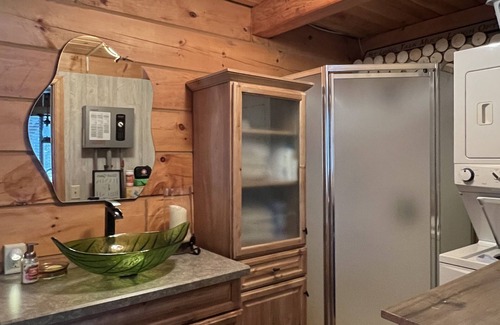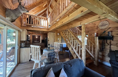 Welcome to The Lincoln Log Cabin! Log cabin offers quaint, serene, peaceful surroundings perched along the Jump River in Sheldon, WI. You'll love the log details, rustic decor, modern amenities, wrap around deck, wildlife, privacy, stamped patio, quiet river mornings, & firepit nights making for a great destination! Shallow river with rock bottom is the perfect home for small mouth bass, crawfish, frogs, turtles, & many other river creatures. We enjoy the sound of cranes, coyotes, & the occasional eagle traveling low along the river! The town of Jump River (about a mile) offers nearby drink/dining, & with a little further trip you find Ladysmith & Lake Holcombe for more choices. Easily access snowmobile/ATV trails, & use the river to your hearts content! River is condusive to kayaking (depth depending), floating, wading, fishing, & winter travel by snowmobile. Cabin is a loft design (so not a lot of privacy). The adjacent garage may also be rented. Please inquire with any questions, prior to booking or for rates/availability for both. Base price is for two guests. We hope to share our "river escape" with you!