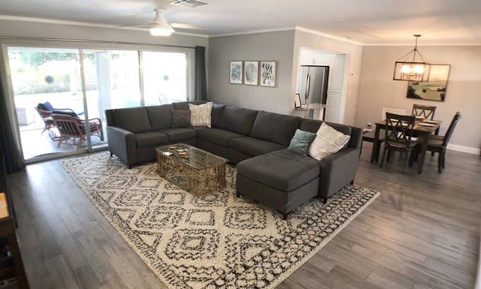 As a traveler, you'll delight in the property's array of amenities, including an outdoor pool(not heated), free WiFi, and a washer and dryer for your convenience. Unwind in the living room or step outside to the porch and enjoy the Florida sunshine. The fully stocked kitchen, complete with a stove, oven, refrigerator, and more, allows you to savor home-cooked meals, while the smart TV with satellite/cable channels provides endless entertainment options.