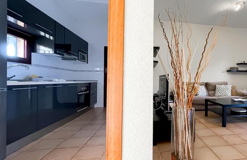 This beautiful holiday home is located in the urbanisation of Tamaragua, in La Capellanía, halfway between Corralejo and its impressive dunes and the small fishing village of El Cotillo with its beaches and cliffs. The house consists of a single floor with one bedroom, a bathroom with bathtub and another one with shower. Its maximum capacity is 2 people and 1 child. It has a living room with dining area from where you can access the terrace with another outdoor dining area and from there directly to the solarium, a landscaped space, equipped with garden furniture. The kitchen is independent and is equipped with: 4-ring ceramic hob, coffee machine, toaster, microwave, oven, washing machine, fridge, dishwasher and all the necessary kitchenware. The house also has: Wifi connection in all common areas, TV, iron with ironing board, hairdryer. Other services: Cots and high chairs.