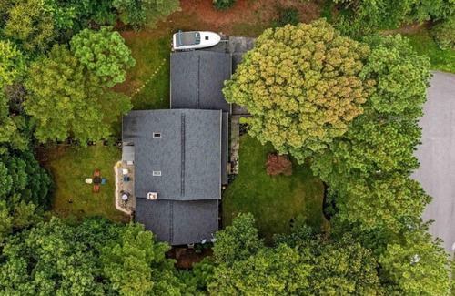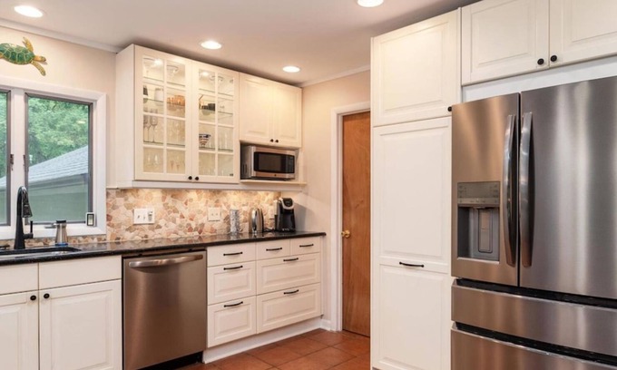 Relax every evening in the back yard. The setting is incredibly peaceful and a wonderful romantic escape for a family getaway. Find peace and reconnect with nature at this amazing short term rental with 45 feet of undeveloped creek view.