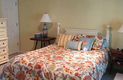Need a gameday/graduation/Double Decker/school visit place to stay? Let the “LandShark Lounge” be your home away from home. This charming 2 bedroom, 2 bath pool house bungalow is located in a quiet, established neighborhood that is 10 minutes from campus & the Oxford Square. It features a large great room that provides a wonderful place to relax and visit with family & friends. There is a large dining table that seats 6 comfortably. The bedrooms consist of one queen and one full with private baths. There is also a queen blow up mattress and a comfortable couch for extra guests. Other accommodations include a full kitchen with modern appliances & flat screen TVs in each room.