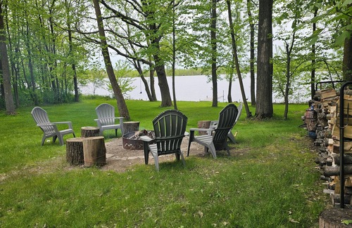 Relax and enjoy the serenity of nature on this quiet property surrounded by woods and a private lake. Bring your fishing poles and fish on the private lake or try out the 2 neighboring lakes, Pokegama Lake & Cross Lake, which are less than 10mins away. At night, relax around a bonfire where wood is provided.