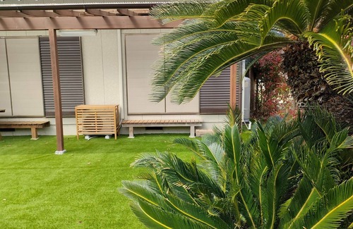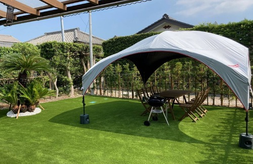 It is a vacation rental style house that uses an old private house and there is artificial grass in the garden where you can also enjoy BBQ