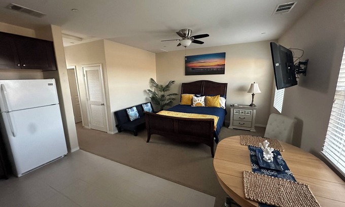Get ready to relax in this stylish studio in beautiful Ventura. This spacious place features a full kitchen, comfortable queen bed with optional futon for an additional guest. Perfect for 1-3 people. Enjoy the decor and all the amenities of a home. Washer, dryer, smart TV, Wi-Fi, AC and central heating. Travel a short distance to Shopping and Entertainment. Visit historical downtown Ventura and enjoy the amazing restaurant’s or beautiful beaches. Return to a quiet, safe, comfortable place you’ll enjoy for business or for pleasure.