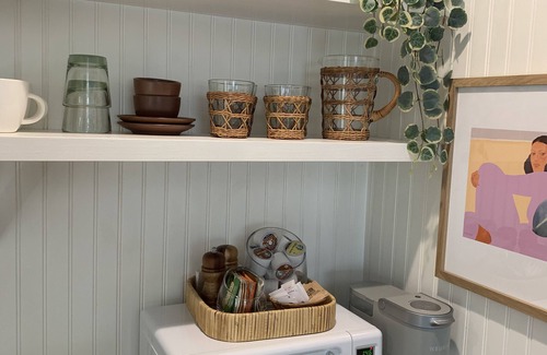 Enjoy this cozy tropical bungalow in the heart of Montecito. Easy walking to local shops and restaurants, this bungalow is also less than a mile up the road from Butterfly and Miramar beaches. Inside you'll find a styled living space with upscale furnishings, large smart TV and fast WiFi, fully stocked kitchen, unlimited coffee and teas, fresh linens & bedding, soaps and other amenities. There's also an outdoor shower and a private patio in the front to lounge the day away. This private hedged-in bungalow has everything you'll need for your getaway.