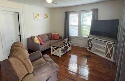 Relax by the grill on the beautiful, private, backyard patio. Enjoy the comforts of our wonderful living room with WIFI and a smart TV!