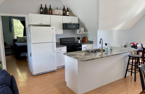 This private get-away features two full bedrooms, one full bathroom, full kitchen, laundry, and tv. We do have internet for basic use but ask that you do not stream on the wifi as it is data limited; easy designated parking. Comfortably sleeps four, plus a sleeper sofa in the common room. Watch the sunrise over the marsh from the living room and deck; watch sunset over Manokin from large dining area window.