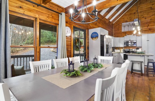 Updated and fully renovated in 2022 this spacious yet cozy cabin is located in the North Georgia Mountains. Guests can sip coffee over stunning water views from the screened-in porch before heading into town or deep into the mountains. Some guests choose to stay at the cabin and rejuvenate. If so, we recommend lounging in the living room before the fireplace or sway in the swing overlooking the water. Whether you choose to rest or explore, there’s a covered hot tub waiting for you at the end of the day, and the outdoor fire pit is the perfect spot to eat s’mores and stargaze.