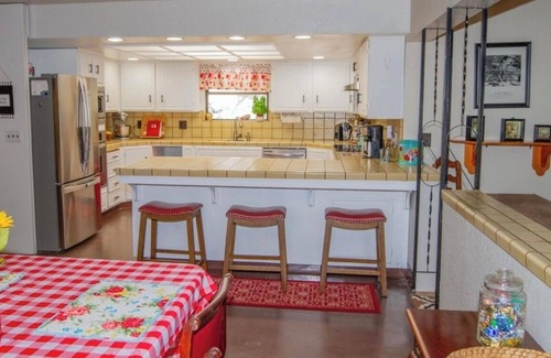 Stay comfortably in Yokuts Valley at this 3-bedroom villa. Just 35 minutes from Grant Grove Kings Canyon National Park entrance. Relax or play ping pong by the hilltop seasonal pool and enjoy overlooking the views of the San Joaquin Valley as well as Sierra Nevada’s with the 360 degree views. Nestled in a tranquil setting, this several acre property offers, robust internet, smart TV’s throughout, laundry facilities, full kitchen and more for your convenience. With 3 bathrooms available, guests can relax and unwind in this serene retreat. Plenty of indoor and outdoor games. Enjoy your time in Yokuts Valley at our villa.