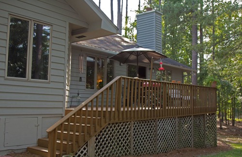 Relax, Recharge and Play On is the motto of the owners. Surrounded by the natural beauty of a landscaped wooded lot, the townhouse is located close enough to McCormick for a quick trip to the grocery store yet far enough away for complete quiet and relaxation. Restaurants are located within a few miles of the property and after a day of golfing or boating there is no need to cook. The townhouse is just 30 yards from the shoreline and can be enjoyed from the deck or the swing near the lake. Rooms have beautiful views of the lake. Come stay with us and get recharged.