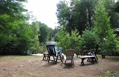 The three bedroom cottage can hold up to six people. The cottage has several amenities you may not find at all vacation rentals. It has a dock, grill, canoe, kayak, stove, enclosed porch, and a campfire area with firewood. A spiral staircase takes you to one of the bedrooms. Pets are welcomed and there is a walking area on the grounds.