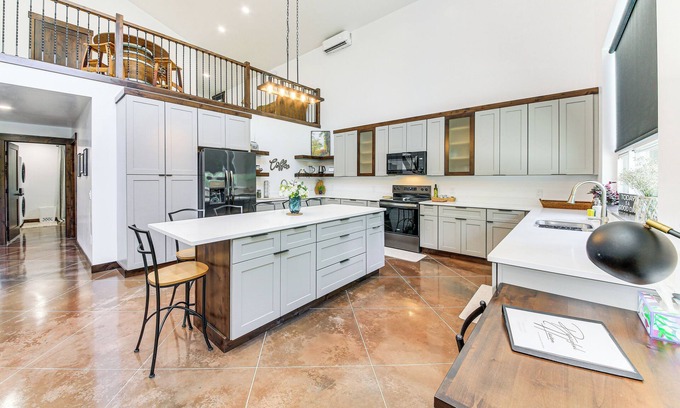 A living room, a BBQ grill, air conditioning, and a ceiling fan are featured at this 3-bedroom, 2-bathroom rental. The kitchen is equipped with an oven, a stovetop, and a dishwasher, as well as an ice maker, a microwave, and cookware.