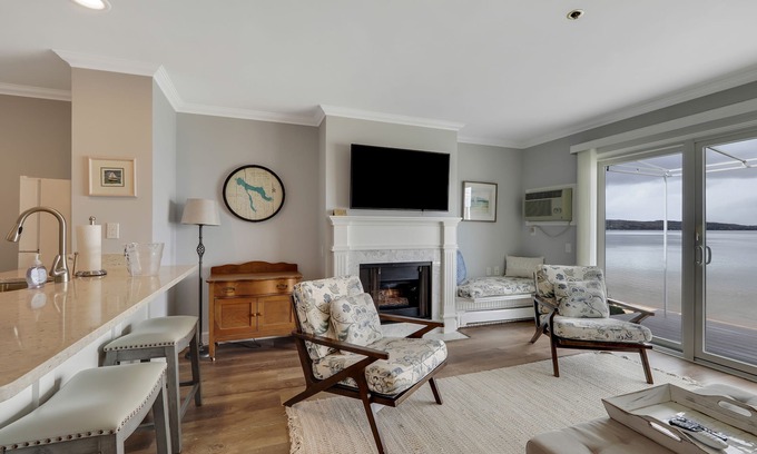 - Vaulted Ceilings + Prime Lake Charlevoix Views | Fireplace | Private Patio|