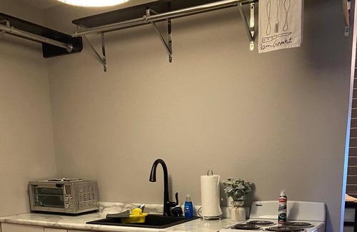 We are in the process of adding a full kitchen. We anticipate this being completed by June. Please bare with us as we complete these updates between our bookings. We hope this full kitchen will provide a better experience to your stay once completed.